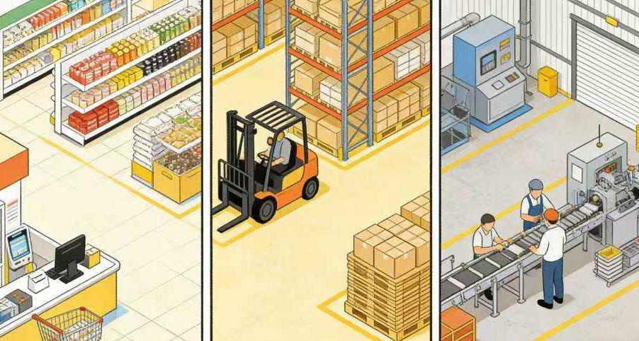 المساحات الصغيرة (الممرات، المتاجر الصغيرة، دور رعاية المسنين): اختر آلات تنظيف الأرضيات التي تُدفع يدويًا. فهي خفيفة الوزن، ومرنة، وتناسب المساحات الضيقة، ولن تُهدر أموالك على نماذج الركوب.